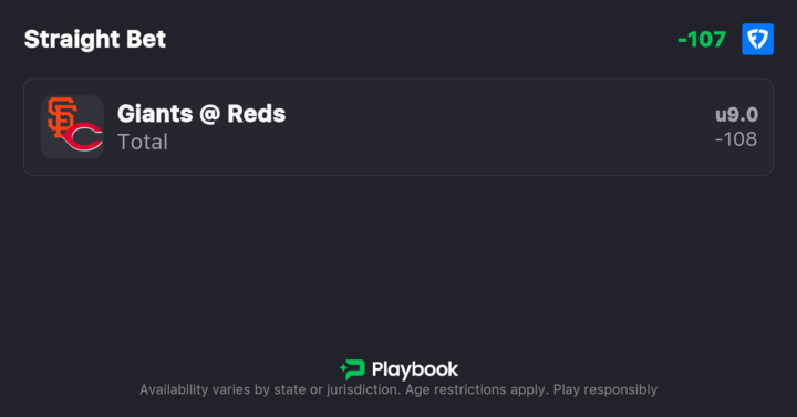 - Giants vs Reds Pick: Under 9