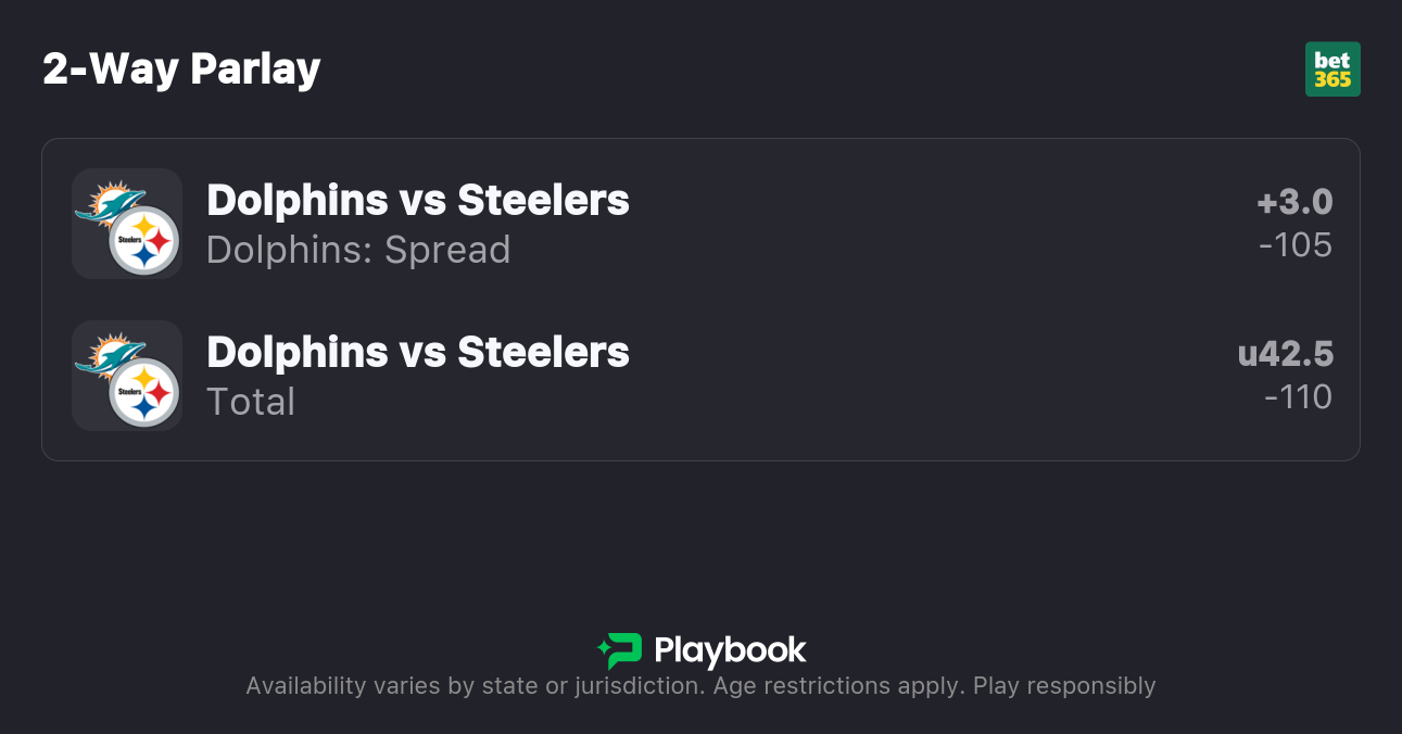 However, viewing traditional markets like the point spread and total gives bettors two smart ways to pick Dolphins vs. Steelers tailing PRO insights.
