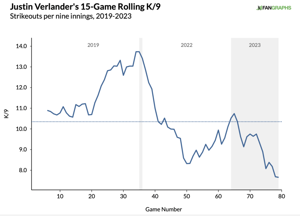 Just before the trade, Verlander showed signs of returning to his Cy Young form. But there remain underlying questions about his decline in strikeout rate this year.