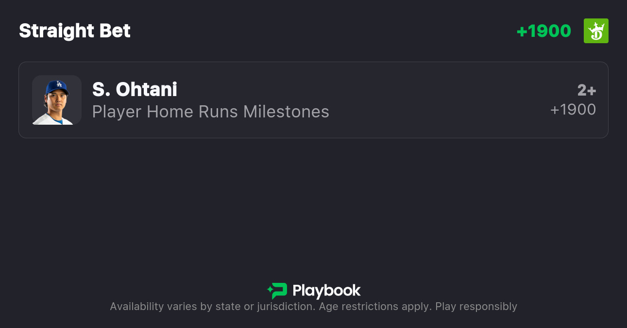 Shohei Ohtani is at +225 to hit a home run tonight, which is just an insane number for anyone to hit a home run.