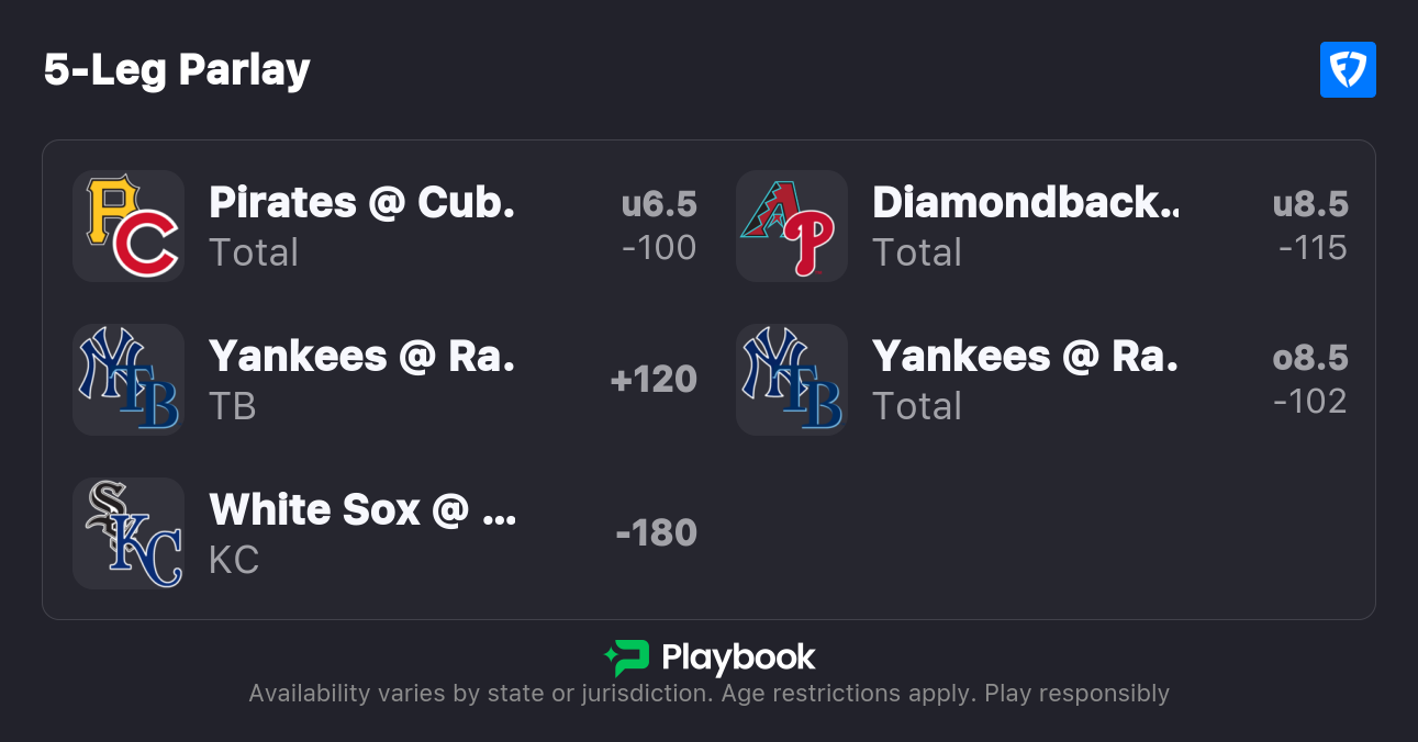 - Tampa Bay Rays (+130, 0.5u), BetMGM, bet to +120