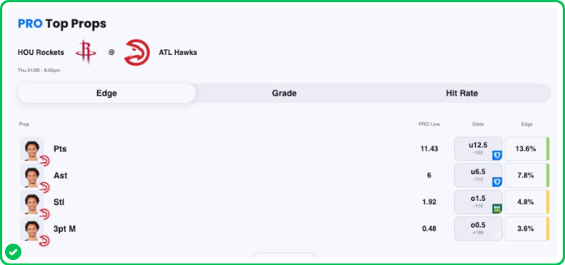 My Hawks vs. Rockets best bet is on Dyson Daniels under 18.5 points + assists, but make sure to find the best odds by checking our live NBA odds page.