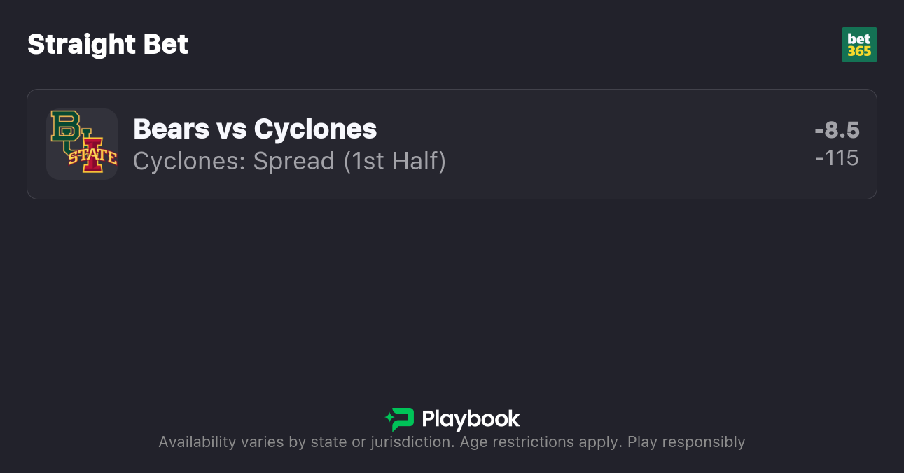 My Baylor vs Iowa State best bet is on the Cyclones to cover the spread in the first half. For all of your college basketball bets, be sure to find the best lines by using our live NCAAB odds page.