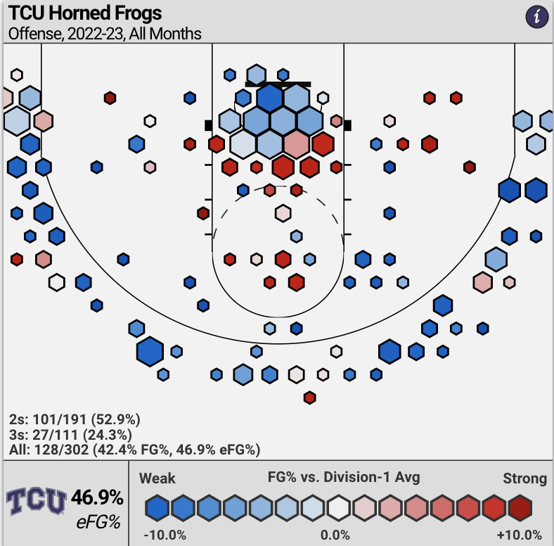 Building off of that, the Horned Frogs do not get points from anywhere other than the free throw line or on close-up shots.