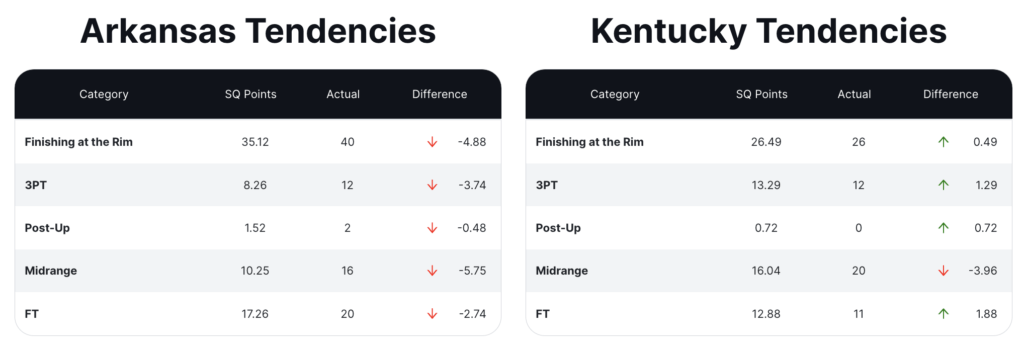 In the previous meeting with Arkansas, Kentucky scored 20 of its 73 points from the mid-range. But the biggest difference in the game was how effective each team was in transition.