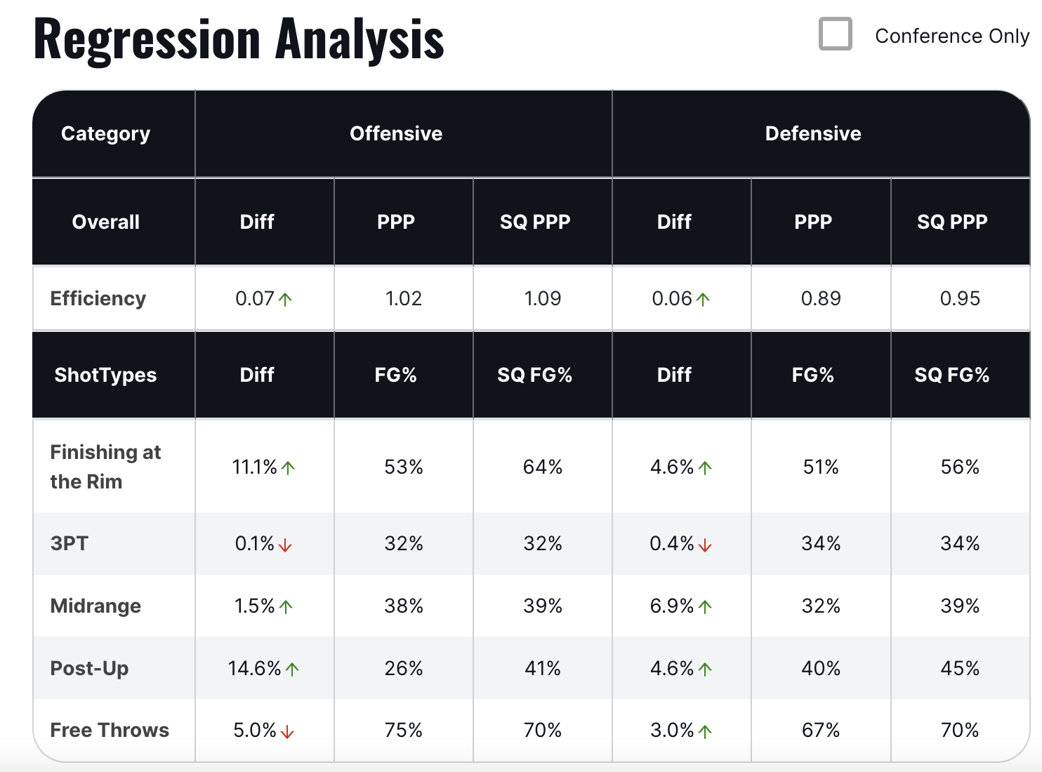 The shooting regression indicators are also showing that Northwestern is likely going to head in the wrong direction sometime soon.