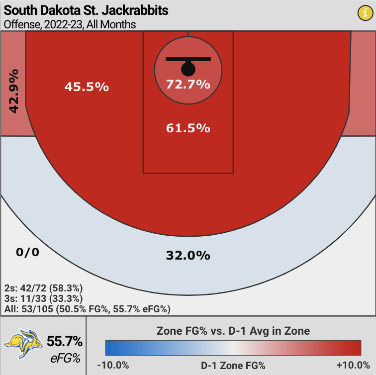 That said, South Dakota State is no slouch on offense. The Jackrabbits are ranked 65th in Adjusted Offensive Efficiency (KenPom) for a reason.