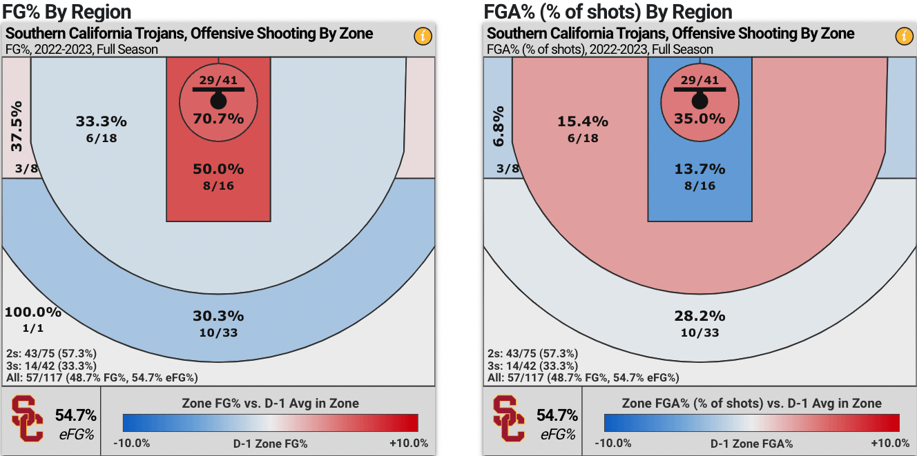 Meanwhile, USC has been near-impossible to score on at the rim, even if it's letting guys get there.
