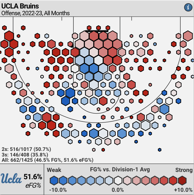 UCLA typically likes to get the ball inside. Jaylen Clark, Jaime Jaquez, Amari Bailey and Adem Bona all shoot over 50% on 2s, so this could lead to some issues for the Beavers.