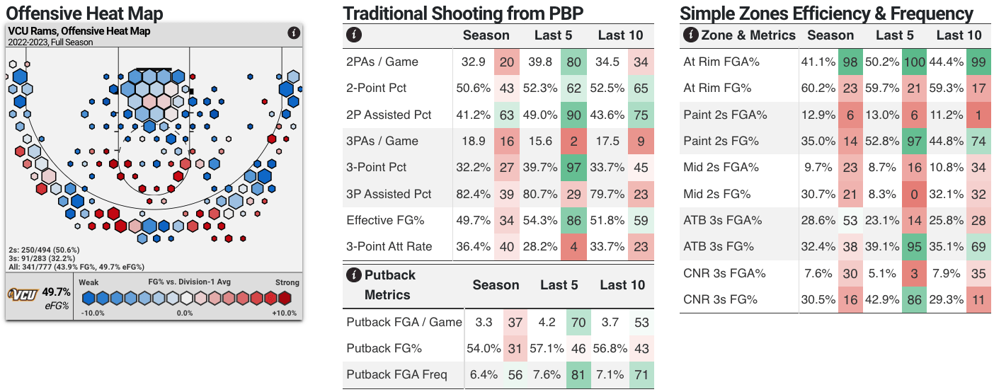 The Rams' offense is lacking, as well. VCU has improved recently, but only on shots in the paint and from above the break — two areas the Davidson defense has been top notch when it comes to defending.