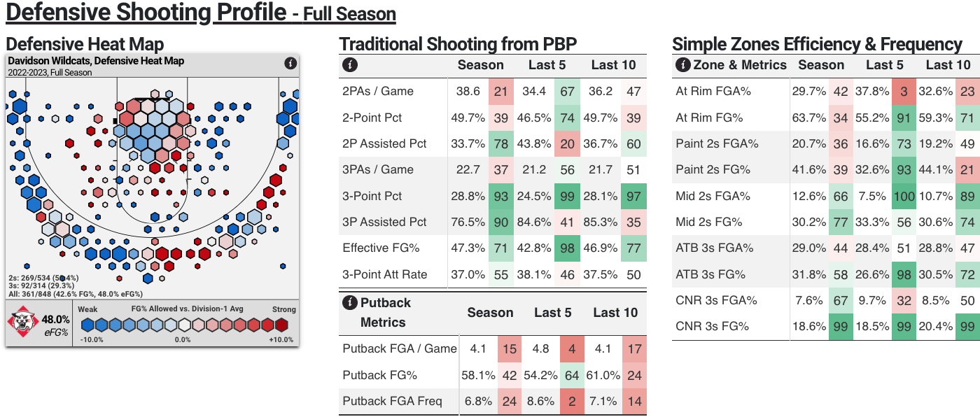 On the defensive side of the ball, Davidson has been one of the best teams in the nation when it comes to defending the perimeter. The Wildcats rank in the 93rd percentile, having held opposing teams to just 28.8%.