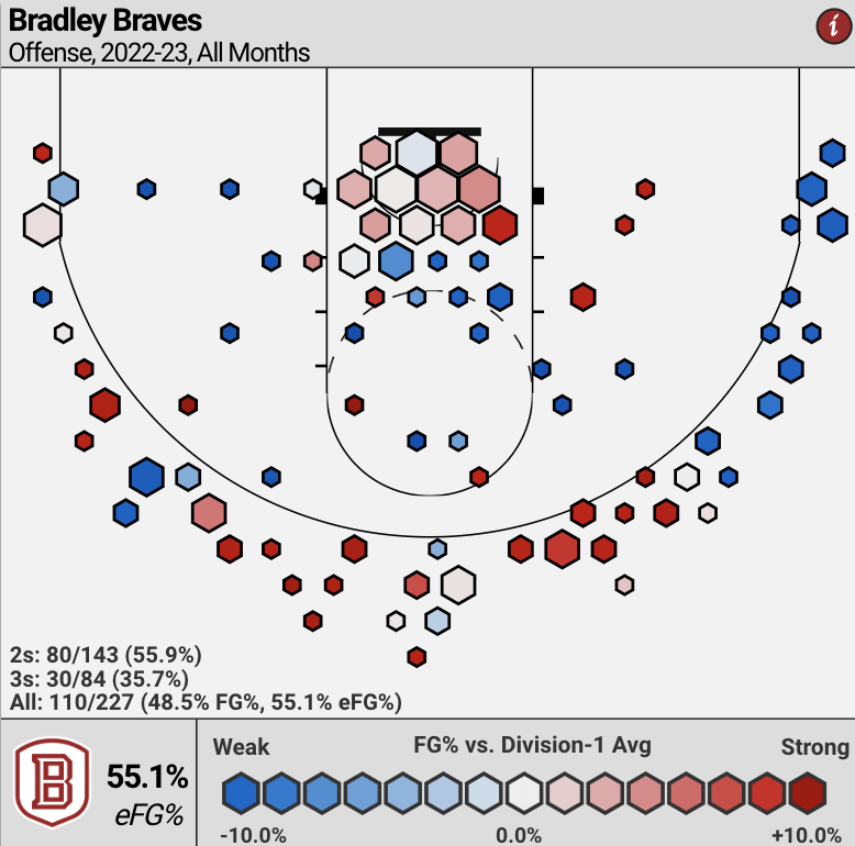Still, Auburn turns opponents over 23.8% of the time, and Bradley coughed up the ball a bit more than usual against Utah State. Expect similar pressure on the ball from a better defensive team in Auburn.