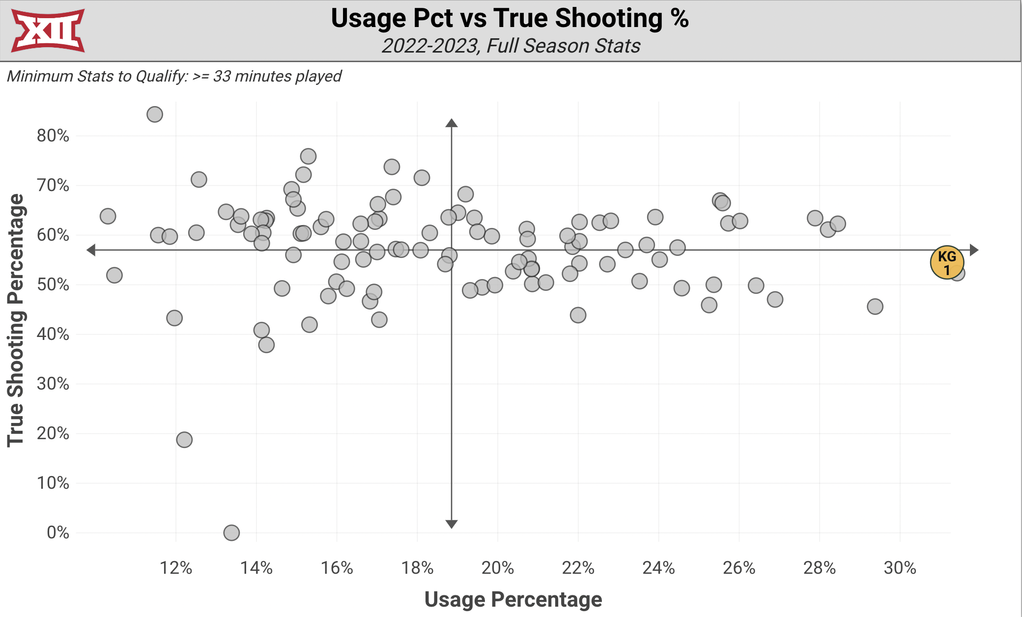 Continued improvement from George is probably the next step. The freshman has become the team's highest-usage player and one of the highest-usage players in the Big 12, but his efficiency is lagging slightly.