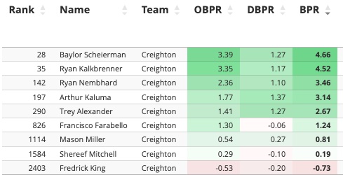 Kalkbrenner's importance was shown on Christmas Day, as he scored a team-high 19-points to go with four rebounds, three assists and a block. As is shown in EvanMiya's BPR Rankings, Kalkbrenner's presence is extremely valuable to the Bluejays.