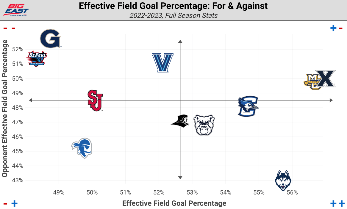 Providence isn't on the same level as UConn from a talent perspective. Still, it should be able to rebound with the Huskies (sixth nationally in OR%) and keep up in the free-throw department (top-30 nationally in free-throw rate and free-throw rate allowed).