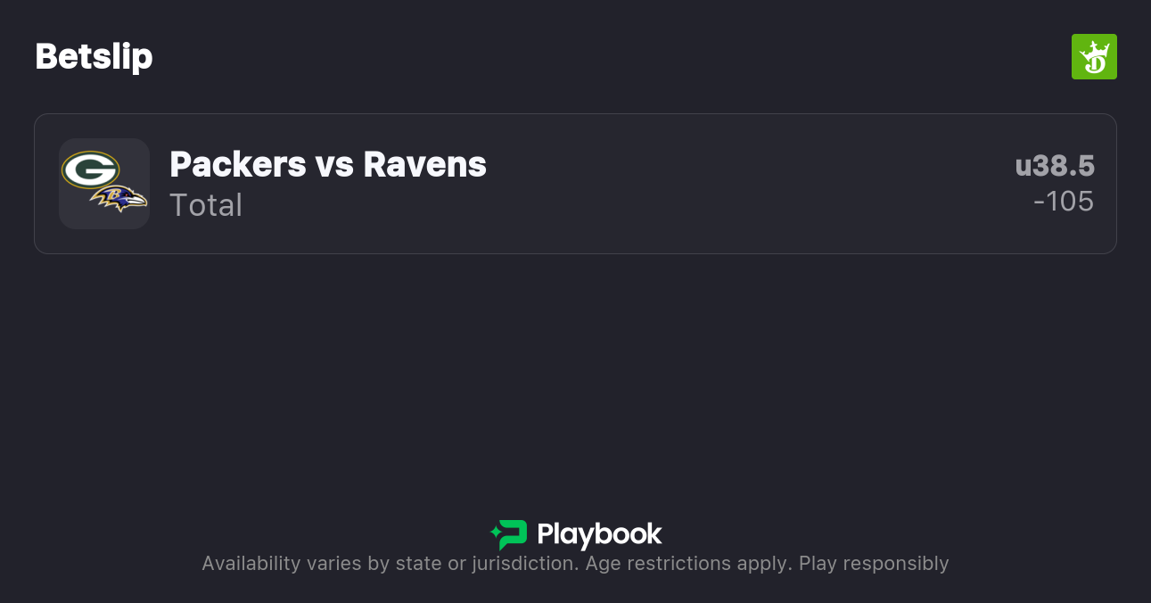 - Ravens vs Packers pick: Under 38.5