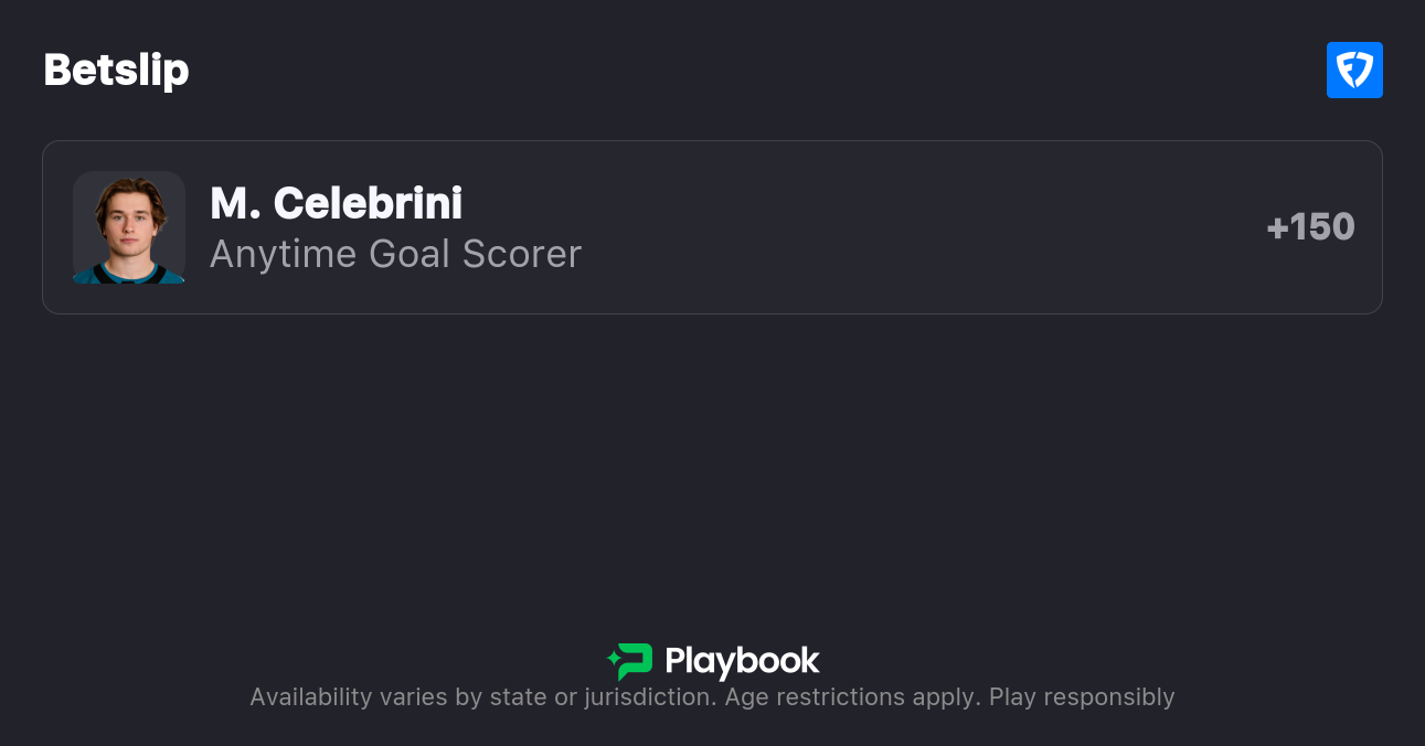 Pick: Macklin Celebrini Anytime Goal Scorer (+155)